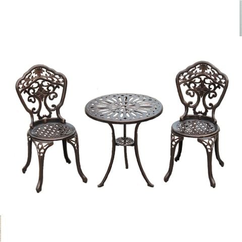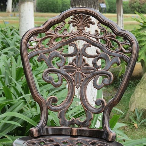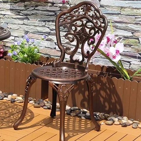Ghế được chế tác từ nhôm đúc sơn tĩnh điện, một chất liệu nổi bật với độ bền cao và khả năng chống gỉ sét. Sơn tĩnh điện không chỉ làm tăng tính thẩm mỹ của ghế mà còn bảo vệ bề mặt khỏi ảnh hưởng của thời tiết, giúp sản phẩm duy trì vẻ đẹp và chức năng lâu dài. Chất liệu nhôm đúc cũng đảm bảo rằng ghế sẽ giữ được hình dáng và độ bền qua thời gian sử dụng.