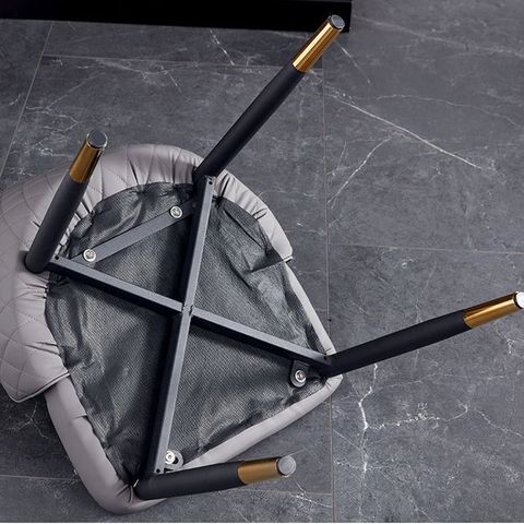 Ghế ăn Vanity nổi bật với thiết kế thanh lịch và hiện đại. Phần đệm ghế và tựa lưng được bọc da công nghiệp cao cấp, tạo cảm giác êm ái và dễ chịu khi ngồi. Chân ghế bằng sắt sơn tĩnh điện được bọc núm đồng, không chỉ đảm bảo sự chắc chắn mà còn làm tăng thêm vẻ sang trọng cho sản phẩm.