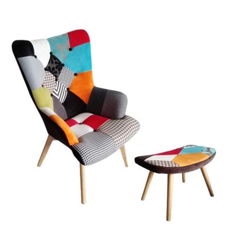 Tên sản phẩm: Ghế bành thư giãn và đôn bọc vải thổ cẩm