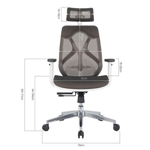 Chất liệu: Khung nhựa, lưng lưới, đệm mút, tay ghế nhựa, chân hợp kim, piston class 3