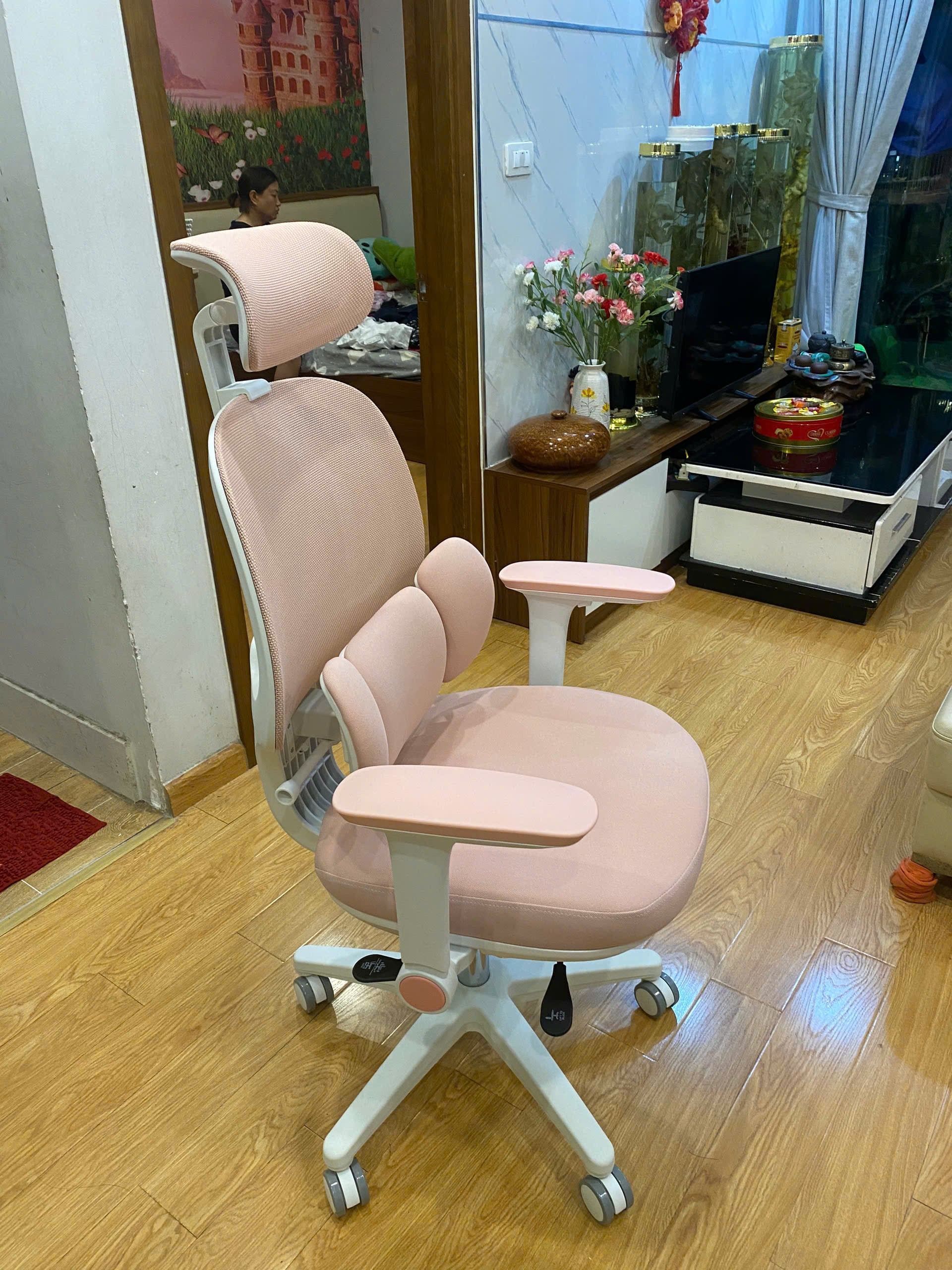 Tay vịn có thể gập xuống, rất phù hợp cho những ai cần khoảng trống hai bên – ví dụ như khi chơi guitar hoặc muốn đẩy ghế sát vào bàn. Đây là điểm cộng hiếm có trong tầm giá này.