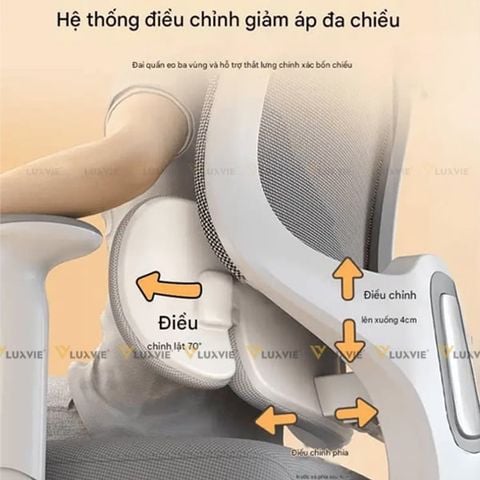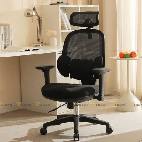 Tựa lưng được thiết kế có phần hỗ trợ thắt lưng điều chỉnh được theo nhiều hướng, ôm sát phần lưng dưới. Điều này giúp giảm áp lực lên cột sống, hạn chế tình trạng đau mỏi lưng do ngồi lâu.