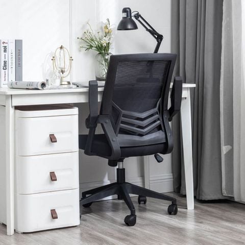 Chất liệu: Khung nhựa, lưng lưới, đệm mút, tay gập nhựa, chân nhựa