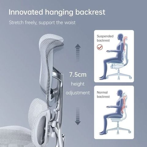 Theo nghiên cứu Công Thái Học của Sihoo, thì để tạo cảm giác thoải mái cho lưng khi ngồi phụ thuộc rất nhiều vào sự hỗ trợ tư thế cho thắt lưng và vai. Với nhiều người khác nhau thì vị trí thắt lưng và vai cũng khác nhau, vì thế để hỗ trợ tốt nhất cho người dùng, Sihoo đã phát minh ra tựa đầu treo Sihoo hỗ trợ tối đa cho người ngoài với những kích thước cơ thể khác nhau.