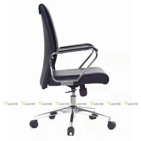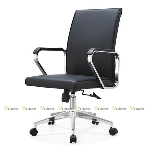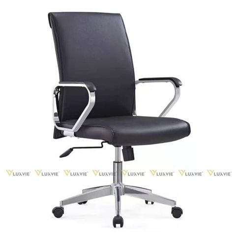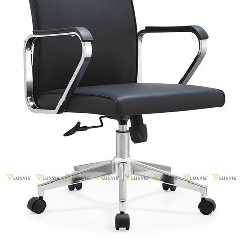 Chất liệu: Tựa lưng da, Tay sắt mạ crom ốp nhựa, Chân xoay mạ crom, Bánh xe nhựa