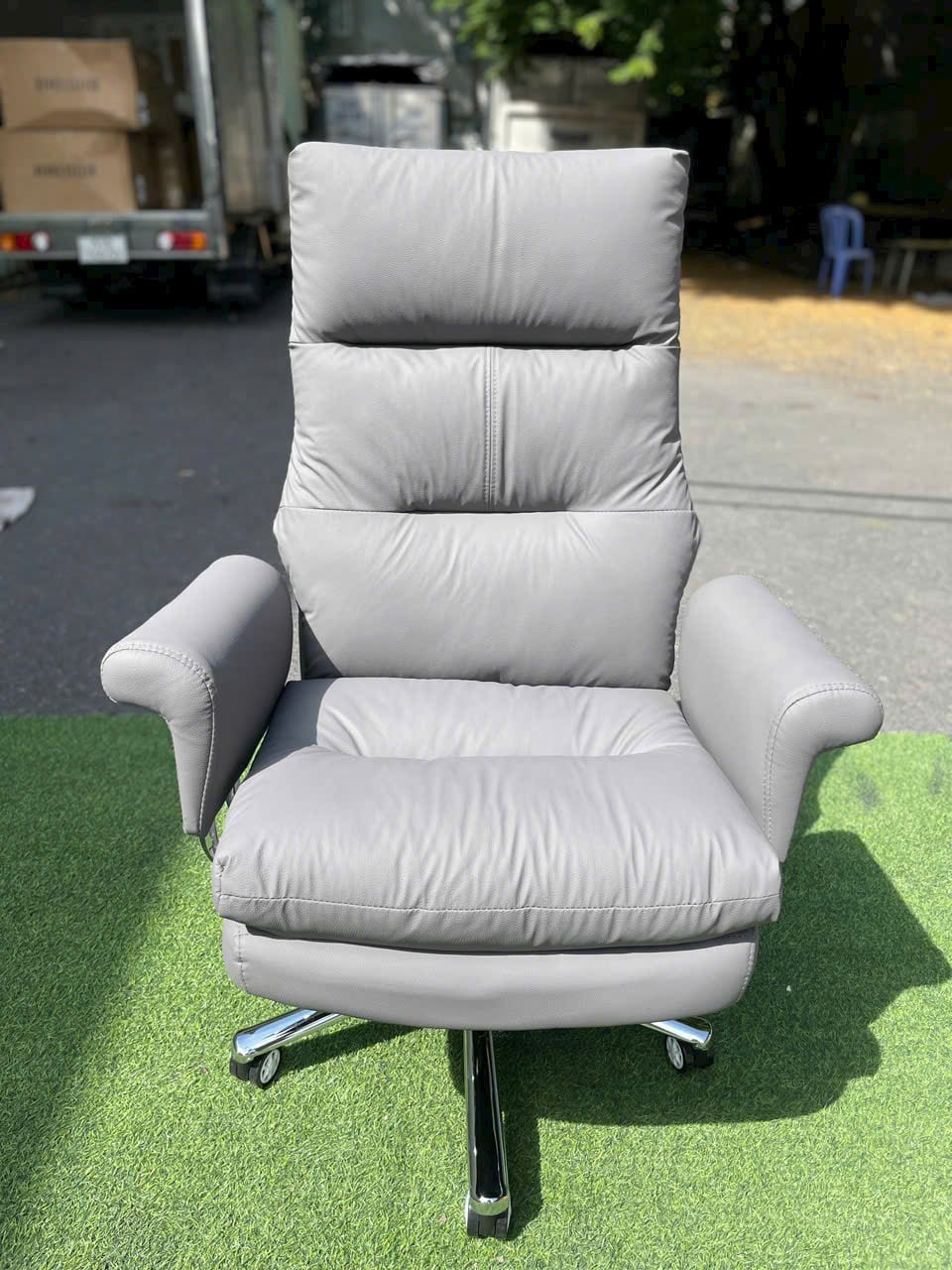 Chất liệu: Tựa và đệm bọc da công nghiệp cao cấp, Tay bọc da công nghiệp cao cấp, Chân mạ crom
