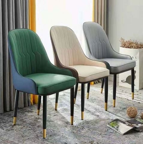 Chất liệu: mặt ghế bọc da công nghiệp cao cấp. Chân sắt Sơn tĩnh điện bọc núm đồng