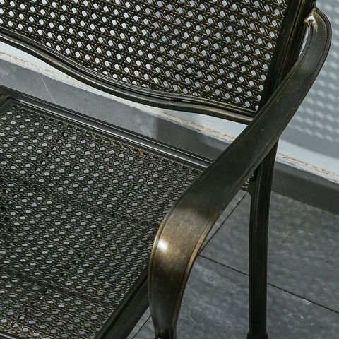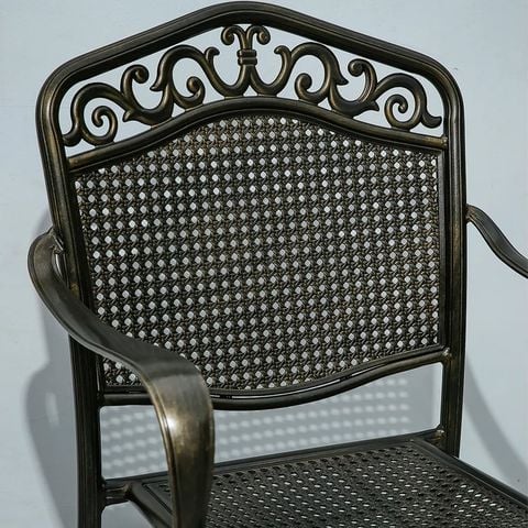 Sản phẩm được chế tác từ nhôm đúc sơn tĩnh điện, nổi bật với độ bền cao và khả năng chống chịu thời tiết tuyệt vời. Sơn tĩnh điện tạo lớp hoàn thiện đẹp mắt và bảo vệ ghế khỏi sự ăn mòn, giúp ghế duy trì vẻ đẹp và chức năng trong thời gian dài. Nhôm đúc mang lại sự chắc chắn và ổn định, là lựa chọn lý tưởng cho sử dụng ngoài trời.