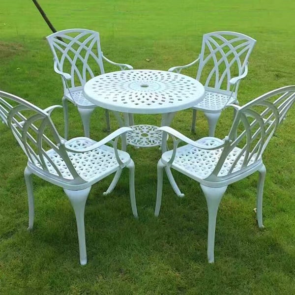 Ghế cafe ngoài trời được chế tác từ nhôm đúc sơn tĩnh điện, nổi bật với độ bền cao và khả năng chống gỉ sét. Sơn tĩnh điện không chỉ cung cấp lớp hoàn thiện đẹp mắt mà còn bảo vệ ghế khỏi các yếu tố thời tiết, đảm bảo sản phẩm giữ được vẻ đẹp và chức năng trong thời gian dài. Nhôm đúc cung cấp sự chắc chắn và ổn định, làm cho ghế trở nên lý tưởng cho sử dụng ngoài trời.