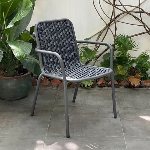 Lưng và đế ngồi của ghế được đan bằng sợi Plastic rope, một vật liệu hiện đại và bền bỉ. Sợi Plastic rope không chỉ mang lại vẻ ngoài sang trọng và tinh tế mà còn có khả năng chống lại các yếu tố môi trường như mưa, nắng, và gió. Đan sợi plastic rope tạo ra một bề mặt ngồi và tựa lưng thoải mái, đồng thời dễ dàng vệ sinh.