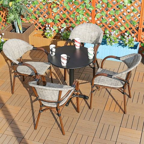 Màu sắc xám và đen của Ghế Cafe Ngoài Trời H132 mang đến sự tinh tế và dễ dàng kết hợp với nhiều phong cách trang trí khác nhau. Sự đơn giản và thanh lịch của màu sắc giúp ghế nổi bật mà không quá cầu kỳ, phù hợp với mọi không gian ngoài trời.