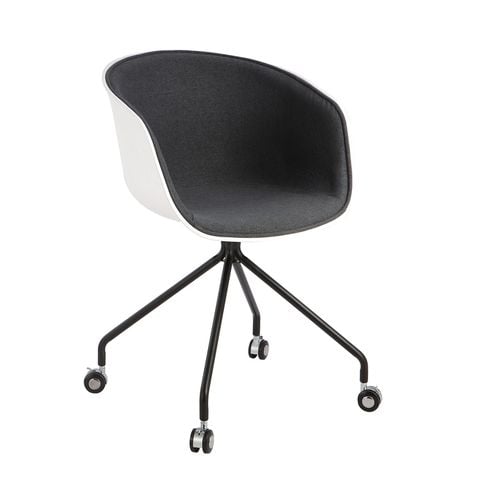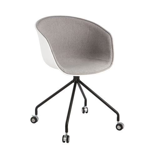 Chất liệu: Lưng ghế nhựa PP bọc vải mặt ngồi êm ái + chân ghế sắt có gắn bánh xe