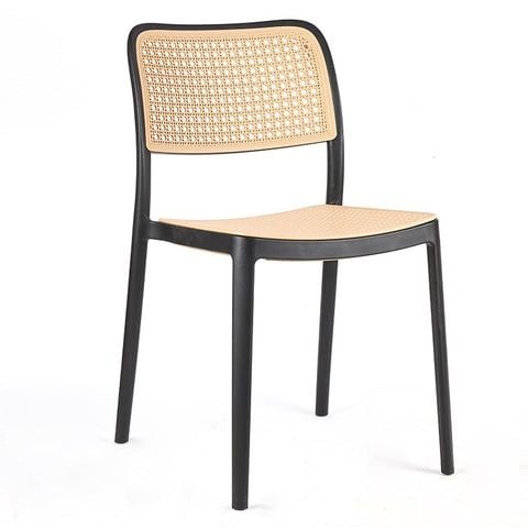 Chất liệu: Khung ghế nhựa đúc, lưng và đế ngồi bằng nhựa giả mây