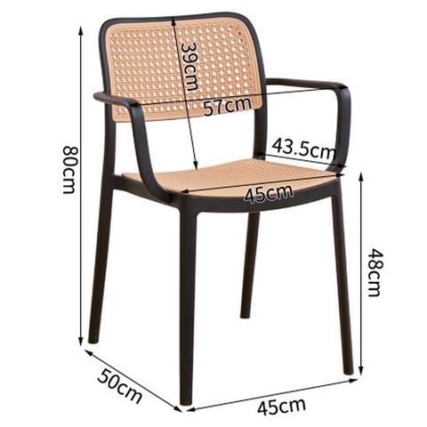 Chất liệu: Khung ghế nhựa đúc, lưng và đế ngồi bằng nhựa giả mây