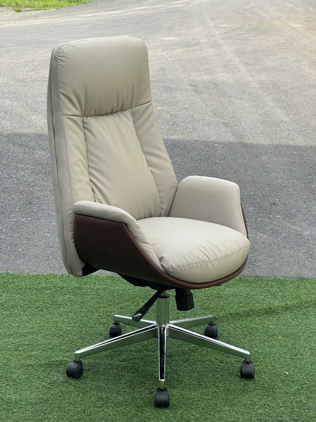 Chất liệu: Tựa lưng da, Chân xoay mạ crom, Bánh xe nhựa