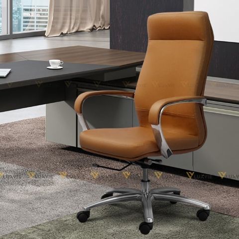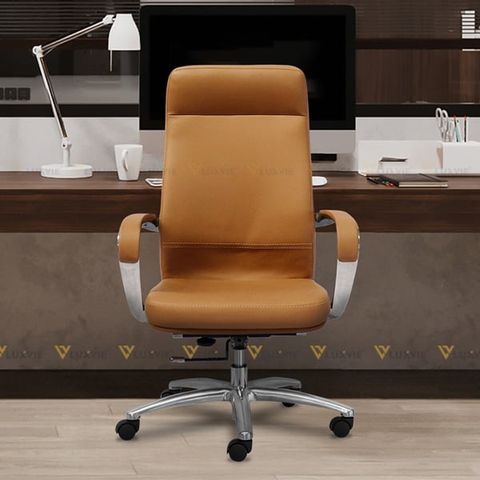 Chất liệu: Tựa và đệm bọc da vinyl, thiết kế chuẩn Ergonomic, tay ghế bọc da, chân nhôm