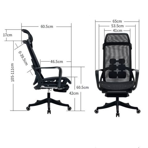 Chất liệu: Lưng nhựa bọc lưới, đệm lưới, tay nhựa, chân xoay nhựa, tựa đầu bọc lưới