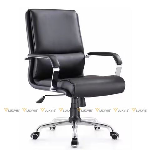 Chất liệu: Tựa lưng da, Tay sắt mạ crom ốp nhựa, Chân xoay mạ crom, Bánh xe nhựa