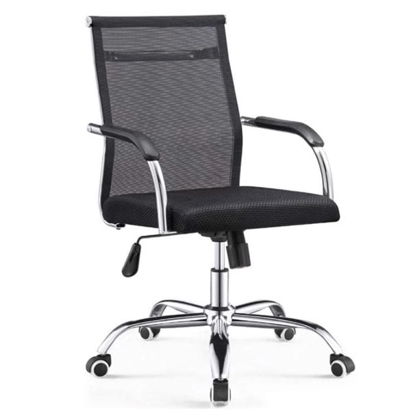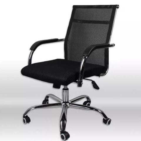 Chất liệu: Tựa lưng lưới, Tay sắt mạ crom bọc nhựa, Chân xoay mạ crom, Bánh xe nhựa