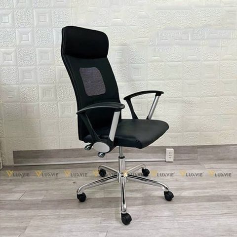 Chất liệu: Lưng nhựa cao cấp bọc lưới, tay nhựa, đệm mút bọc da, chân xoay