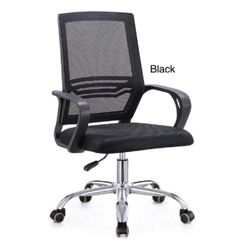 Chất liệu: Lưng nhựa lớp bọc lưới, tay nhựa cong, đệm mút bọc lưới, chân xoay mạ crom