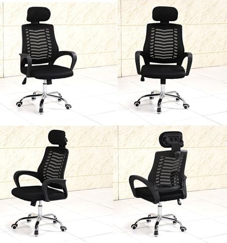 Chất liệu: Lưng nhựa 2 lớp bọc lưới, Tay nhựa cong, Đệm mút bọc lưới, Chân sao mạ crom