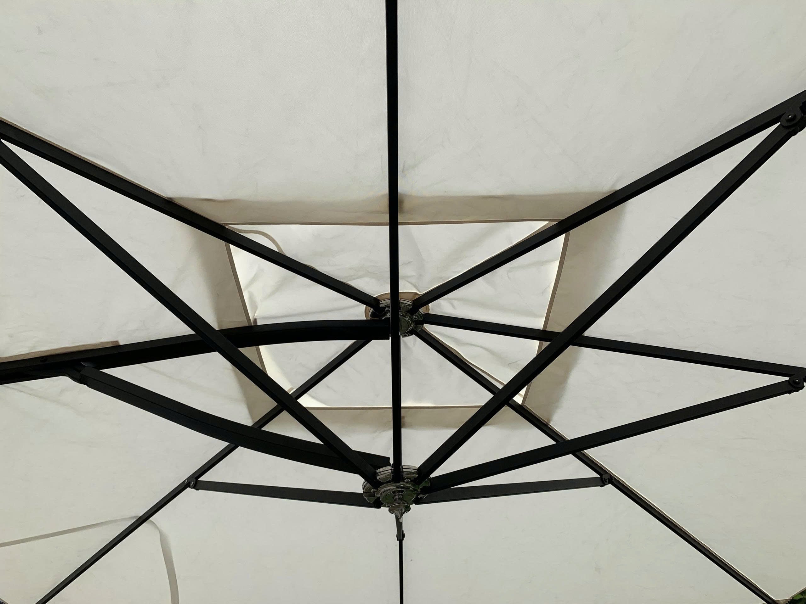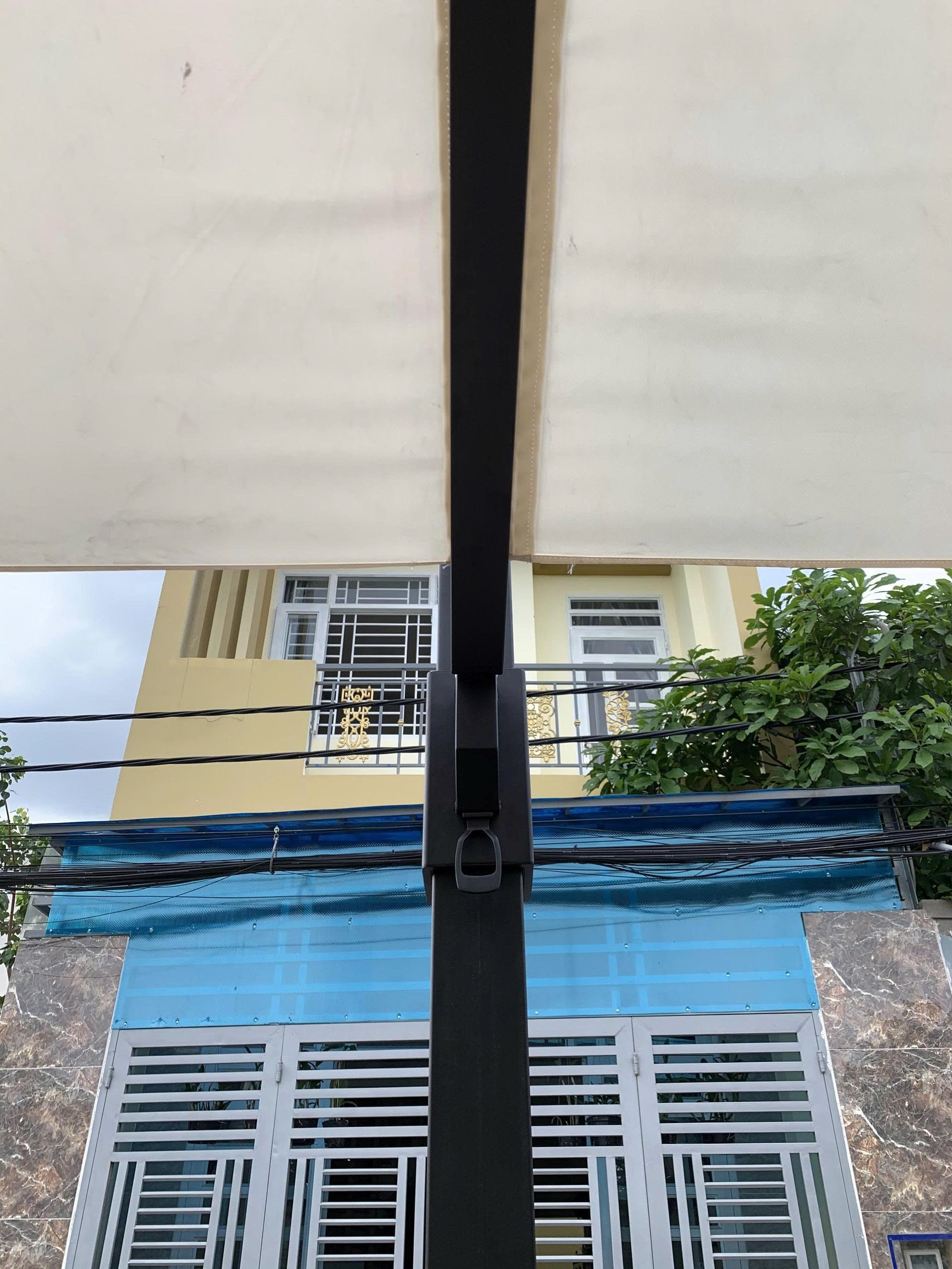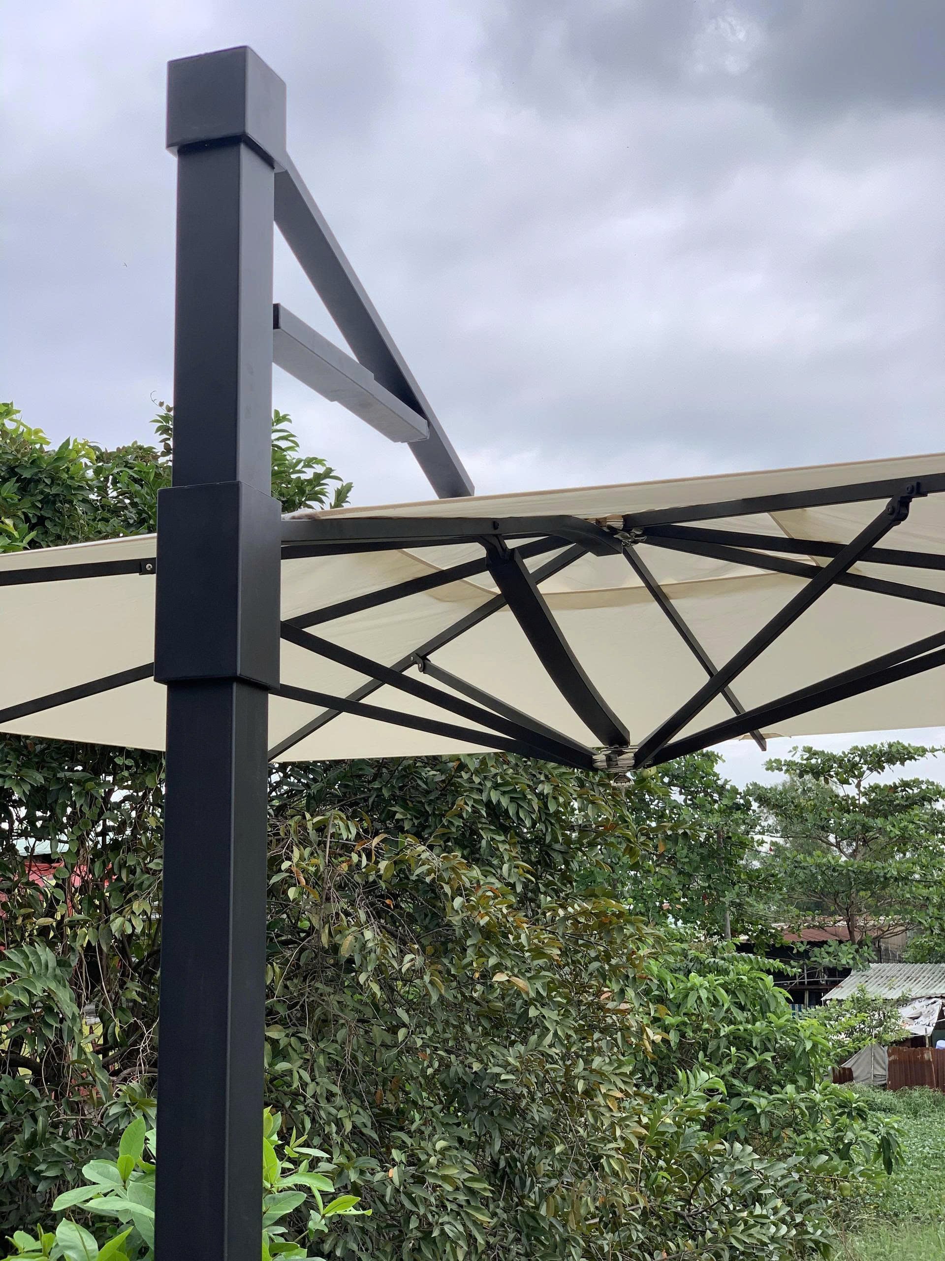 Khung thân dù che nắng được làm từ inox 304 sơn đen mờ không rỉ sét. Tay nắm đẩy trợ lực giúp việc nâng hạ dù trở nên dễ dàng hơn. Khách hàng có thể lựa chọn màu snw tùy thích theo yêu cầu.