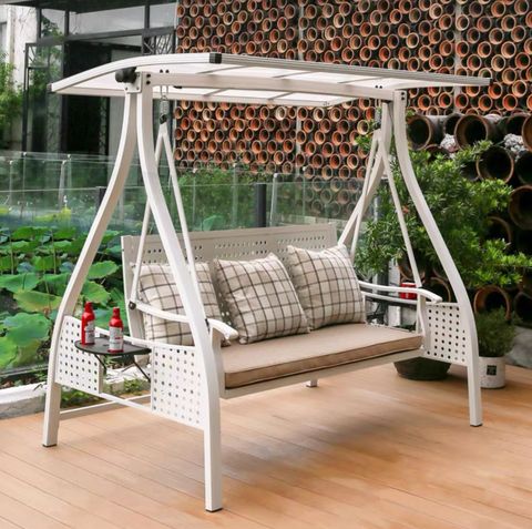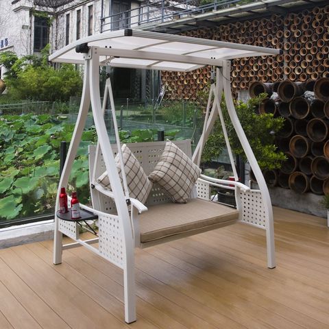 Xích đu DPXD02 được trang bị mái che có pin năng lượng mặt trời, cung cấp ánh sáng nhẹ nhàng vào buổi tối và giúp tiết kiệm năng lượng. Đèn đọc sách tích hợp tạo ra một không gian ấm cúng và thuận tiện cho việc thư giãn vào buổi tối. Bên cạnh đó, giá để café và đồ uống tích hợp giúp bạn dễ dàng thưởng thức đồ uống yêu thích mà không cần phải rời khỏi xích đu.