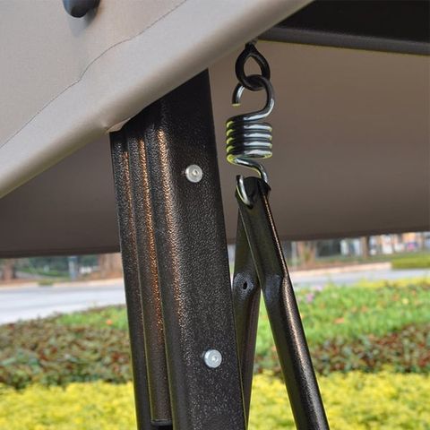 Mái che bạt đi kèm với xích đu không chỉ giúp bạn tránh khỏi ánh nắng chói chang mà còn tạo nên một không gian thư giãn tuyệt vời, bảo vệ bạn khỏi những cơn mưa nhẹ bất chợt. Mái che này có thể điều chỉnh được độ nghiêng, giúp bạn dễ dàng điều chỉnh để phù hợp với nhu cầu sử dụng.